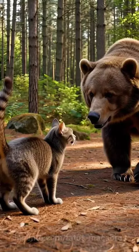 O gato mais corajoso que você verá peitou um urso pardo! Que audácia! 🐻😼👑 @djdtoficial