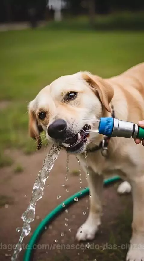 Um cachorro tentando morder a água que sai da mangueira. @djdtoficial