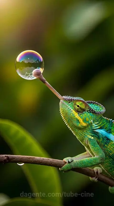 Um camaleão tentando pegar uma bolha de sabão com a língua. @djdtoficial